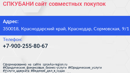 СПКУБАНИ, сайт совместных покупок по адресу 350018, Краснодарский край, Краснодар, Сормовская, 9/1 в дальнейшем Организация, размещена в следующих категориях: