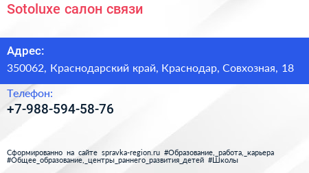 Sotoluxe, салон связи по адресу 350062, Краснодарский край, Краснодар, Совхозная, 18 в дальнейшем Организация, размещена в следующих категориях:
