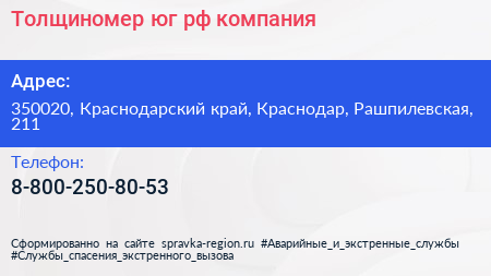 Толщиномер-юг.рф, компания по адресу 350020, Краснодарский край, Краснодар, Рашпилевская, 211 в дальнейшем Организация, размещена в следующих категориях: