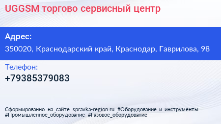 UGGSM, торгово-сервисный центр по адресу 350020, Краснодарский край, Краснодар, Гаврилова, 98 в дальнейшем Организация, размещена в следующих категориях: