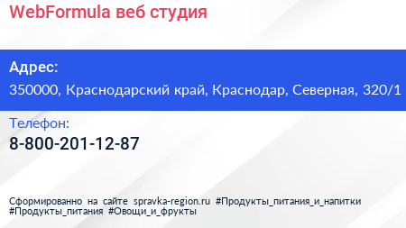WebFormula, веб-студия по адресу 350000, Краснодарский край, Краснодар, Северная, 320/1 в дальнейшем Организация, размещена в следующих категориях: