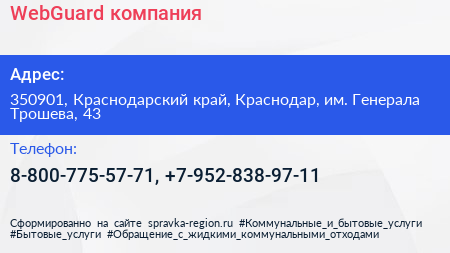 WebGuard, компания по адресу 350901, Краснодарский край, Краснодар, им. Генерала Трошева, 43 в дальнейшем Организация, размещена в следующих категориях:
