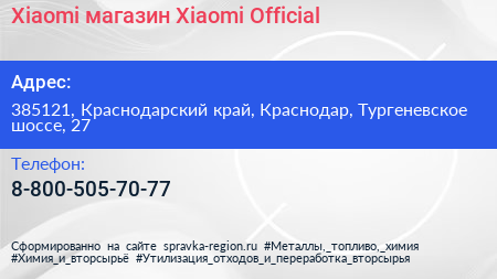 Xiaomi, магазин Xiaomi Official по адресу 385121, Краснодарский край, Краснодар, Тургеневское шоссе, 27 в дальнейшем Организация, размещена в следующих категориях: