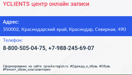 YCLIENTS, центр онлайн-записи по адресу 350002, Краснодарский край, Краснодар, Северная, 490 в дальнейшем Организация, размещена в следующих категориях: