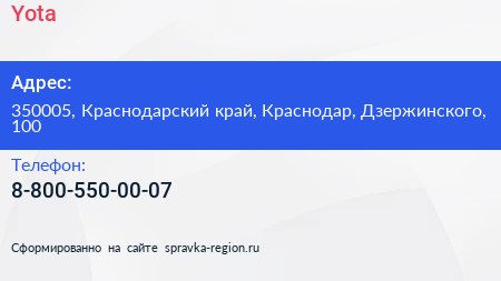 Yota по адресу 350005, Краснодарский край, Краснодар, Дзержинского, 100 в дальнейшем Организация, размещена в следующих категориях:
