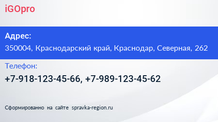 iGOpro по адресу 350004, Краснодарский край, Краснодар, Северная, 262 в дальнейшем Организация, размещена в следующих категориях: