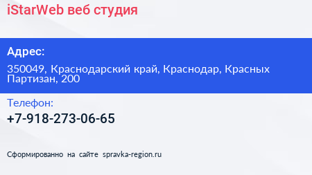 iStarWeb, веб-студия по адресу 350049, Краснодарский край, Краснодар, Красных Партизан, 200 в дальнейшем Организация, размещена в следующих категориях: