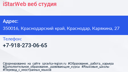 iStarWeb, веб-студия по адресу 350016, Краснодарский край, Краснодар, Карякина, 27 в дальнейшем Организация, размещена в следующих категориях: