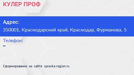 КУЛЕР ПРОФ по адресу 350001, Краснодарский край, Краснодар, Фурманова, 5 в дальнейшем Организация, размещена в следующих категориях:
