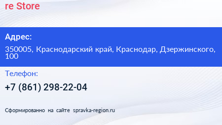 re:Store по адресу 350005, Краснодарский край, Краснодар, Дзержинского, 100 в дальнейшем Организация, размещена в следующих категориях: