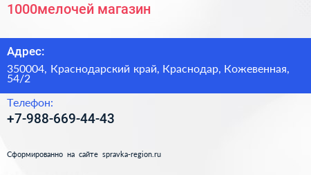 1000мелочей, магазин по адресу 350004, Краснодарский край, Краснодар, Кожевенная, 54/2 в дальнейшем Организация, размещена в следующих категориях: