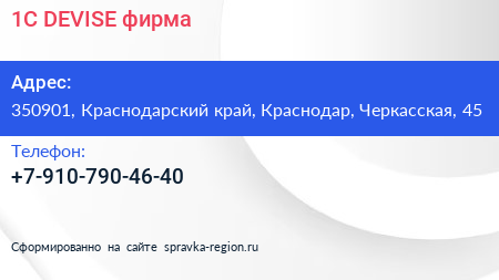 1C DEVISE, фирма по адресу 350901, Краснодарский край, Краснодар, Черкасская, 45 в дальнейшем Организация, размещена в следующих категориях: