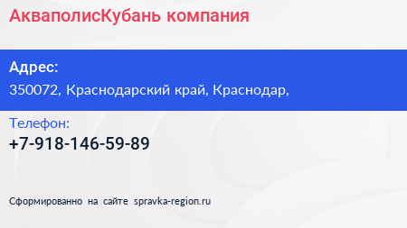 АкваполисКубань, компания по адресу 350072, Краснодарский край, Краснодар, в дальнейшем Организация, размещена в следующих категориях:
