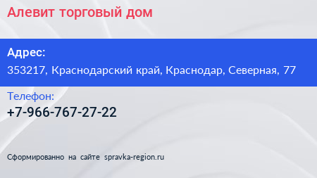 Алевит, торговый дом по адресу 353217, Краснодарский край, Краснодар, Северная, 77 в дальнейшем Организация, размещена в следующих категориях: