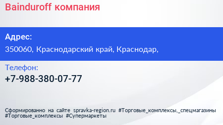 Bainduroff, компания по адресу 350060, Краснодарский край, Краснодар, в дальнейшем Организация, размещена в следующих категориях: