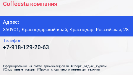 Coffeesta, компания по адресу 350901, Краснодарский край, Краснодар, Российская, 28 в дальнейшем Организация, размещена в следующих категориях: