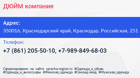 ДЮЙМ, компания по адресу 350016, Краснодарский край, Краснодар, Российская, 251 в дальнейшем Организация, размещена в следующих категориях: