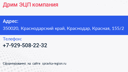 Дрим ЭЦП, компания по адресу 350020, Краснодарский край, Краснодар, Красная, 155/2 в дальнейшем Организация, размещена в следующих категориях: