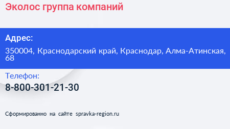Эколос, группа компаний по адресу 350004, Краснодарский край, Краснодар, Алма-Атинская, 68 в дальнейшем Организация, размещена в следующих категориях: