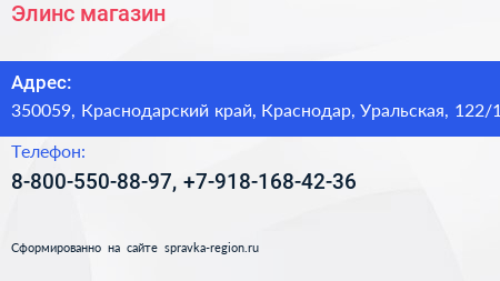 Элинс, магазин по адресу 350059, Краснодарский край, Краснодар, Уральская, 122/1 в дальнейшем Организация, размещена в следующих категориях:
