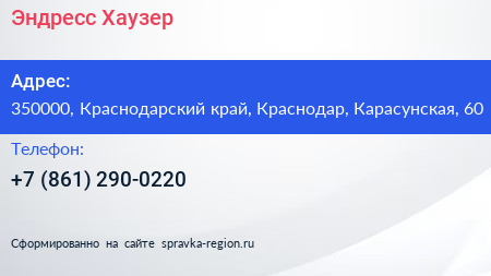 Эндресс+Хаузер по адресу 350000, Краснодарский край, Краснодар, Карасунская, 60 в дальнейшем Организация, размещена в следующих категориях: