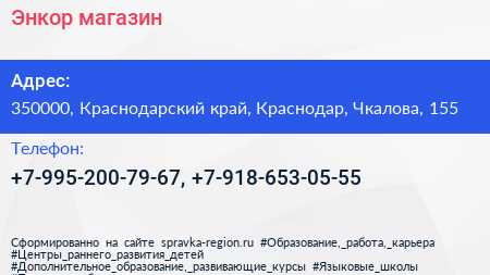 Энкор, магазин по адресу 350000, Краснодарский край, Краснодар, Чкалова, 155 в дальнейшем Организация, размещена в следующих категориях: