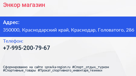 Энкор, магазин по адресу 350000, Краснодарский край, Краснодар, Головатого, 286 в дальнейшем Организация, размещена в следующих категориях: