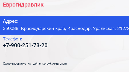 Еврогидравлик по адресу 350088, Краснодарский край, Краснодар, Уральская, 212/2 в дальнейшем Организация, размещена в следующих категориях: