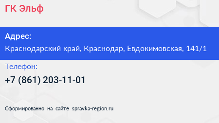 ГК Эльф по адресу Краснодарский край, Краснодар, Евдокимовская, 141/1 в дальнейшем Организация, размещена в следующих категориях: