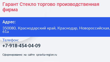Гарант-Стекло, торгово-производственная фирма по адресу 350080, Краснодарский край, Краснодар, Новороссийская, 61а в дальнейшем Организация, размещена в следующих категориях: