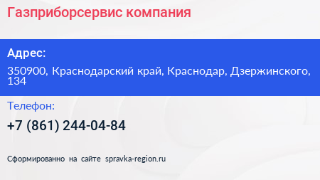 Газприборсервис, компания по адресу 350900, Краснодарский край, Краснодар, Дзержинского, 134 в дальнейшем Организация, размещена в следующих категориях: