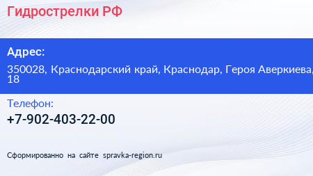 Гидрострелки-РФ по адресу 350028, Краснодарский край, Краснодар, Героя Аверкиева, 18 в дальнейшем Организация, размещена в следующих категориях: