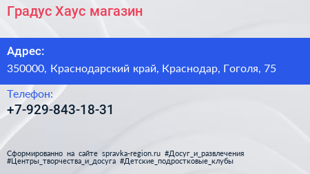 Градус Хаус, магазин по адресу 350000, Краснодарский край, Краснодар, Гоголя, 75 в дальнейшем Организация, размещена в следующих категориях: