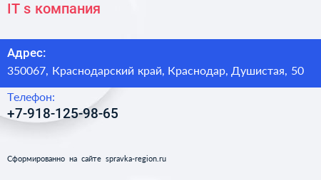 IT & s, компания по адресу 350067, Краснодарский край, Краснодар, Душистая, 50 в дальнейшем Организация, размещена в следующих категориях: