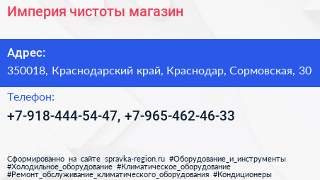 Империя чистоты, магазин по адресу 350018, Краснодарский край, Краснодар, Сормовская, 30 в дальнейшем Организация, размещена в следующих категориях: