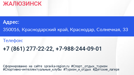 ЖАЛЮЗИНСК по адресу 350016, Краснодарский край, Краснодар, Солнечная, 33 в дальнейшем Организация, размещена в следующих категориях: