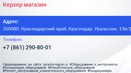 Керхер, магазин по адресу 350080, Краснодарский край, Краснодар, Уральская, 136/1 в дальнейшем Организация, размещена в следующих категориях: