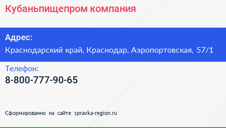 Кубаньпищепром, компания по адресу Краснодарский край, Краснодар, Аэропортовская, 57/1 в дальнейшем Организация, размещена в следующих категориях: