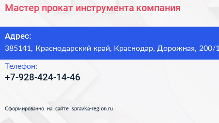 Мастер прокат инструмента, компания по адресу 385141, Краснодарский край, Краснодар, Дорожная, 200/1 в дальнейшем Организация, размещена в следующих категориях: