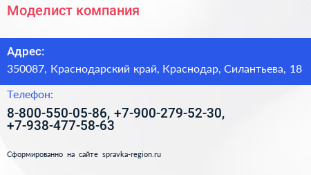 Моделист, компания по адресу 350087, Краснодарский край, Краснодар, Силантьева, 18 в дальнейшем Организация, размещена в следующих категориях: