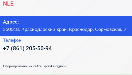 NLE по адресу 350018, Краснодарский край, Краснодар, Сормовская, 7 в дальнейшем Организация, размещена в следующих категориях: