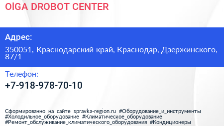 OlGA DROBOT CENTER по адресу 350051, Краснодарский край, Краснодар, Дзержинского, 87/1 в дальнейшем Организация, размещена в следующих категориях: