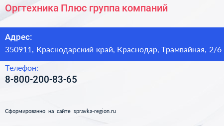 Оргтехника Плюс, группа компаний по адресу 350911, Краснодарский край, Краснодар, Трамвайная, 2/6 в дальнейшем Организация, размещена в следующих категориях: