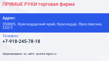 ПРЯМЫЕ РУКИ, торговая фирма по адресу 350005, Краснодарский край, Краснодар, Ярославская, 122/1 в дальнейшем Организация, размещена в следующих категориях: