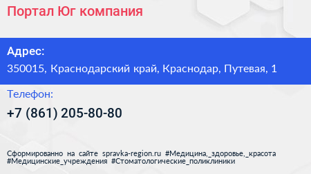 Портал-Юг, компания по адресу 350015, Краснодарский край, Краснодар, Путевая, 1 в дальнейшем Организация, размещена в следующих категориях: