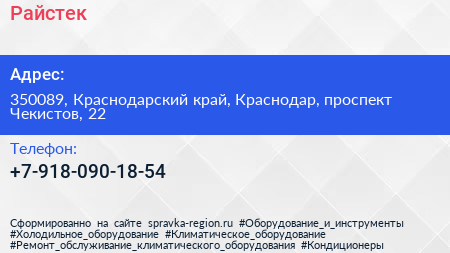 Райстек по адресу 350089, Краснодарский край, Краснодар, проспект Чекистов, 22 в дальнейшем Организация, размещена в следующих категориях: