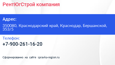 РентЮгСтрой, компания по адресу 350080, Краснодарский край, Краснодар, Бершанской, 353/5 в дальнейшем Организация, размещена в следующих категориях: