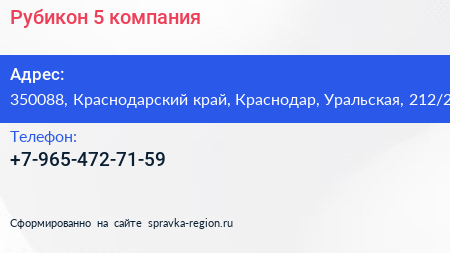 Рубикон-5, компания по адресу 350088, Краснодарский край, Краснодар, Уральская, 212/2 в дальнейшем Организация, размещена в следующих категориях: