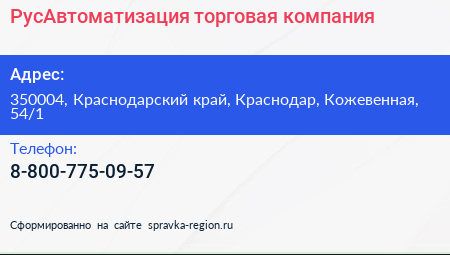 РусАвтоматизация, торговая компания по адресу 350004, Краснодарский край, Краснодар, Кожевенная, 54/1 в дальнейшем Организация, размещена в следующих категориях: