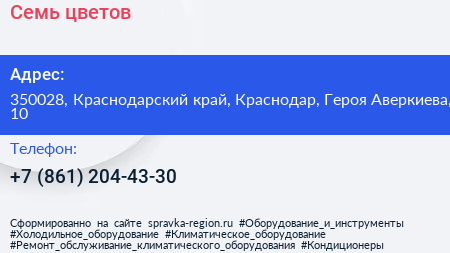 Семь цветов по адресу 350028, Краснодарский край, Краснодар, Героя Аверкиева, 10 в дальнейшем Организация, размещена в следующих категориях: